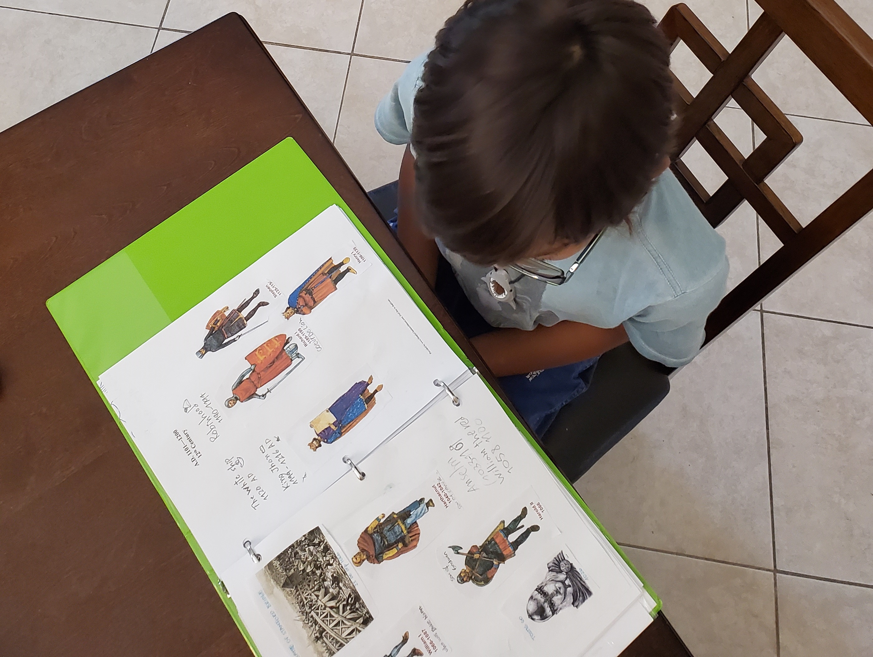 Línea de tiempo y ubicación en Mapa: Esta actividad la hacemos semanalmente y si las lecturas nos proveen de datos para colocar en nuestra línea de tiempo o en un mapa específico. La línea de tiempo es solo una carpeta que esta repartida por siglos antes y después de Cristo, a veces Omelette copia el nombre del evento o del personaje y las fechas, lo acompaña en algunas ocasiones con dibujos y otras veces con recortes.