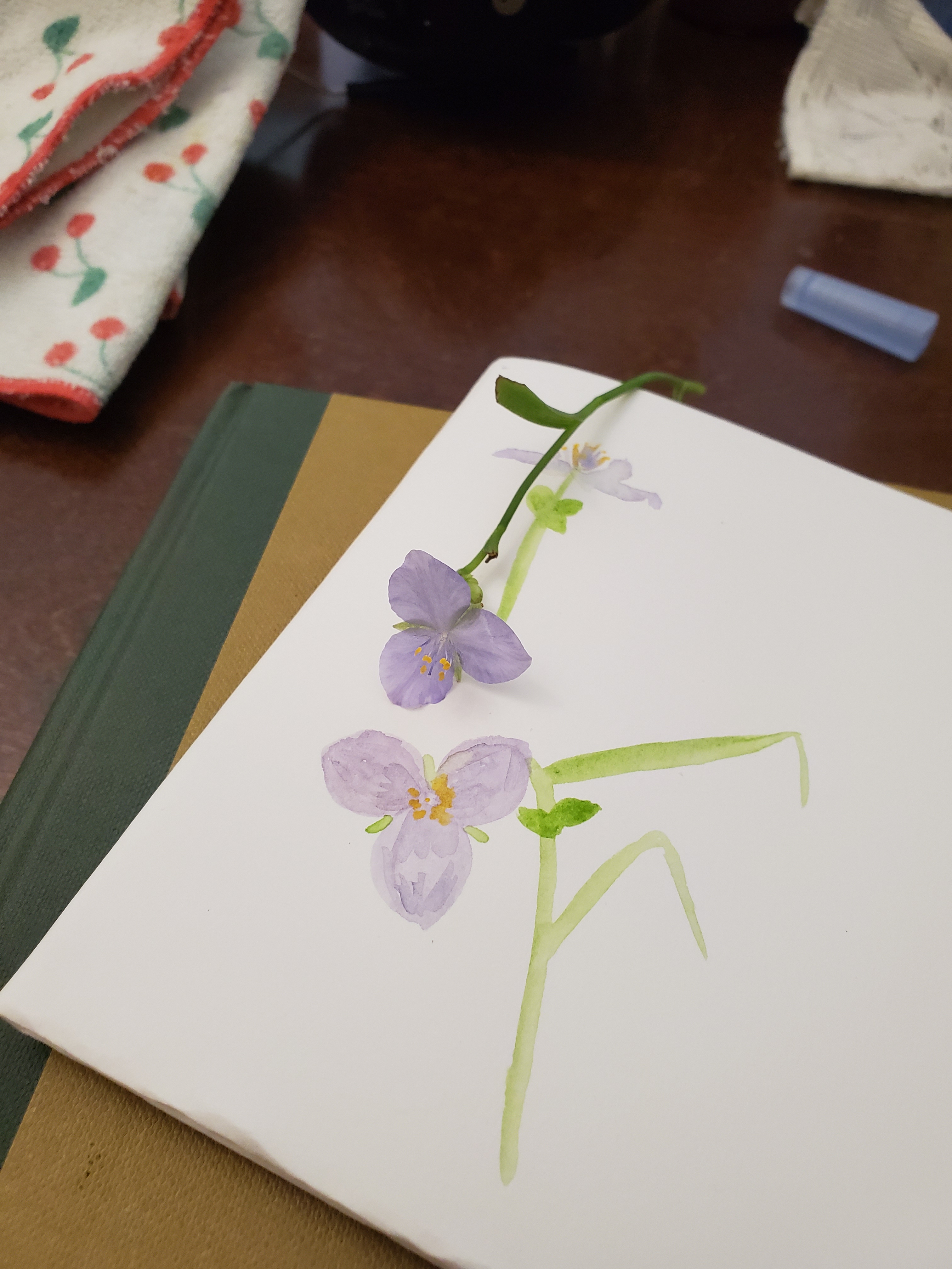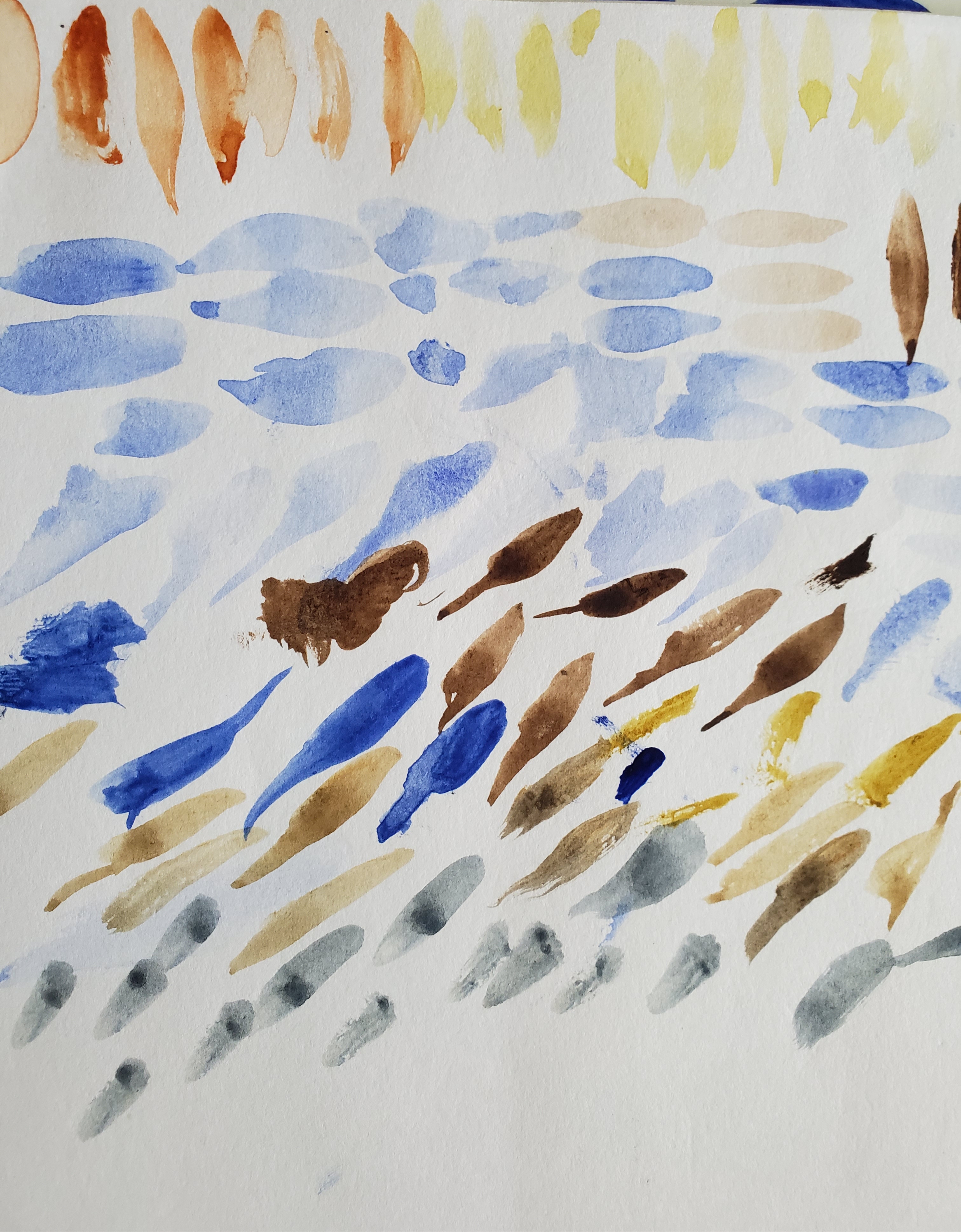 Acuarela y Dibujo en Pincel: Este ha sido un comienzo progresivo ejercitando la mano, y trabajando principalmente los trazos básicos con el pincel. También hacemos algunos registros en el cuaderno de naturaleza usando acuarela. Así juntos hemos explorado colores, tonos, uso de los materiales y combinaciones de colores.