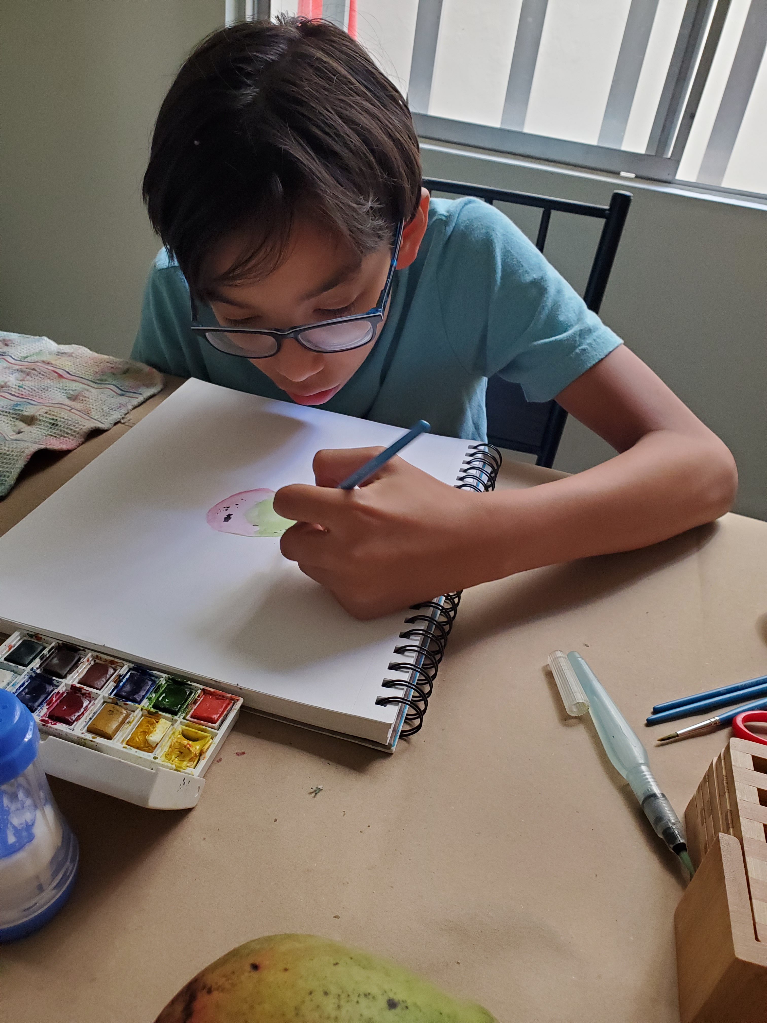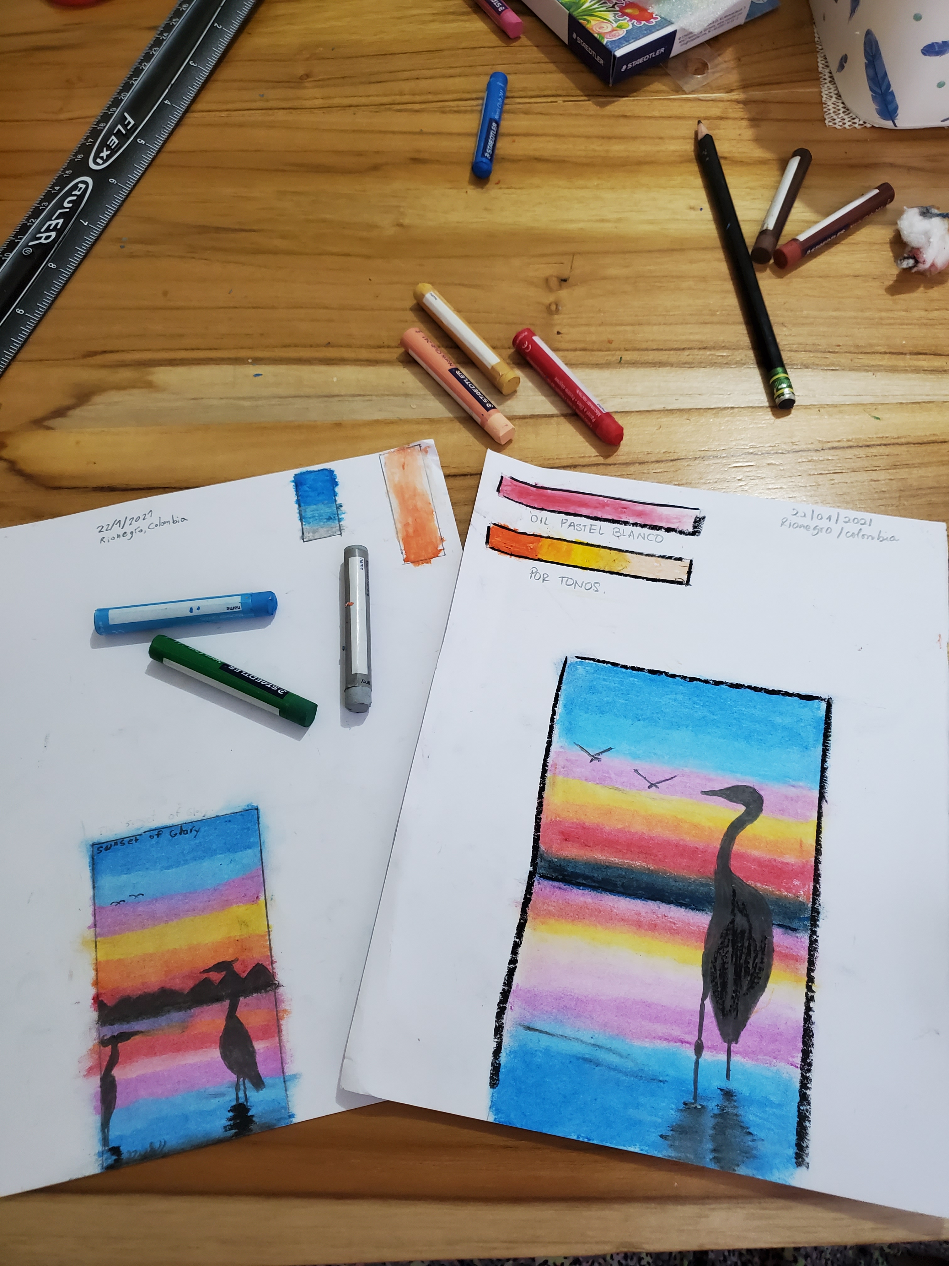 Dibujo: Esta parte de nuestra rutina estuvo protagonizada por el pastel al óleo y carboncillo. Puedo decir con mucha satisfacción que el dibujo mejoró en técnicas básicas de los materiales escogidos y en la consistencia. Un área débil que se ha fortalecido también gracias a los amigos que apoyan con sus conocimientos en nuestras clases. Igualmente continuamos con algunas asignaciones que se requerían en las escuelas de la Señorita Mason como: dibujos de personajes que han leído en sus lecturas, y dibujos a partir de observaciones cuidadosas en sus diarios de naturaleza.