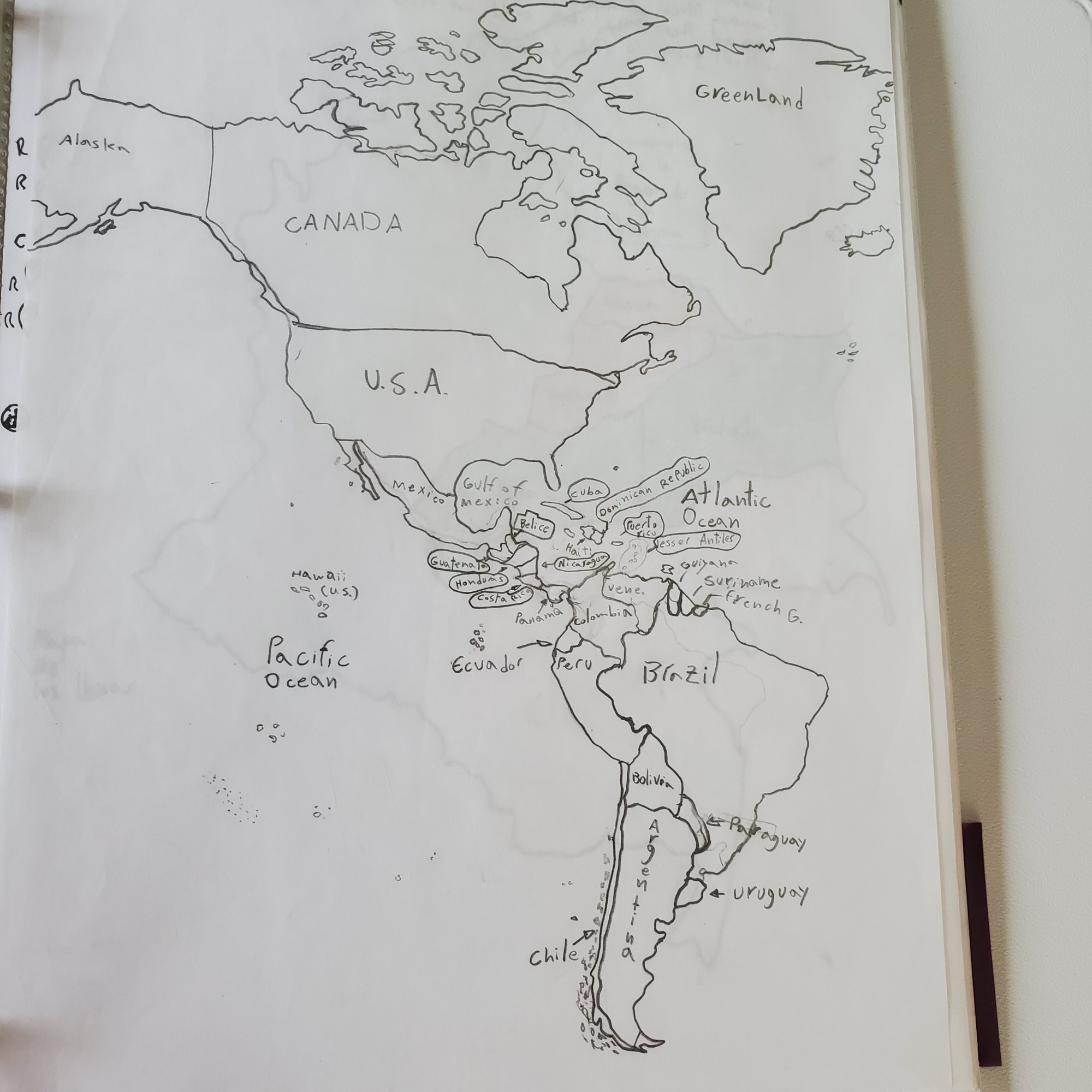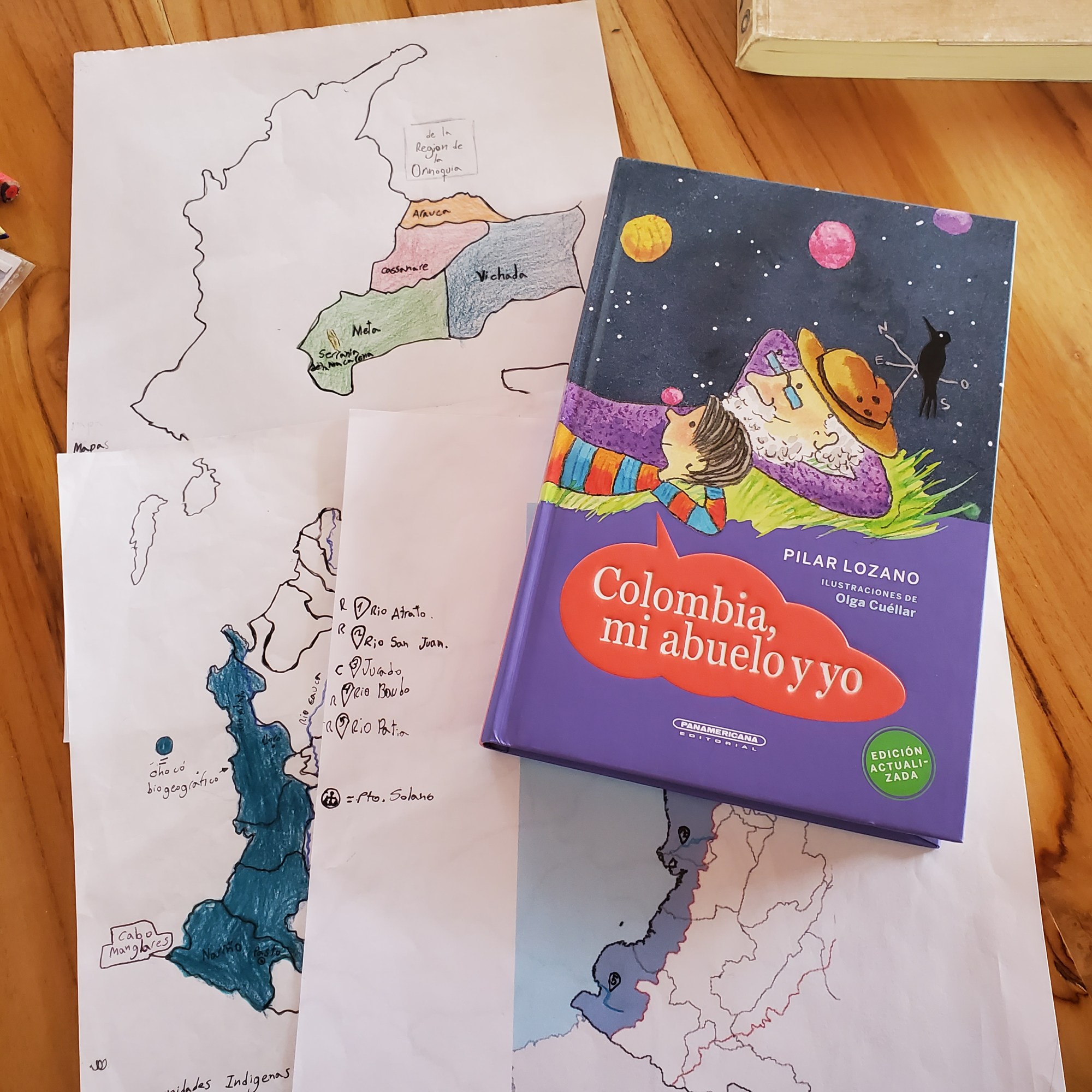 Geografía y trabajo de mapas: Esta actividad la hicimos con los datos que nos proveían las lecturas de la semana (De Bogotá al Atlántico, y Colombia, mi abuelo y yo). Adicionalmente incluimos el trabajo de 10 minutos de mapas semanales que se implementa desde la forma II, en dónde Dany, trabajó todo el mapa completo del mundo ubicando países y capitales.