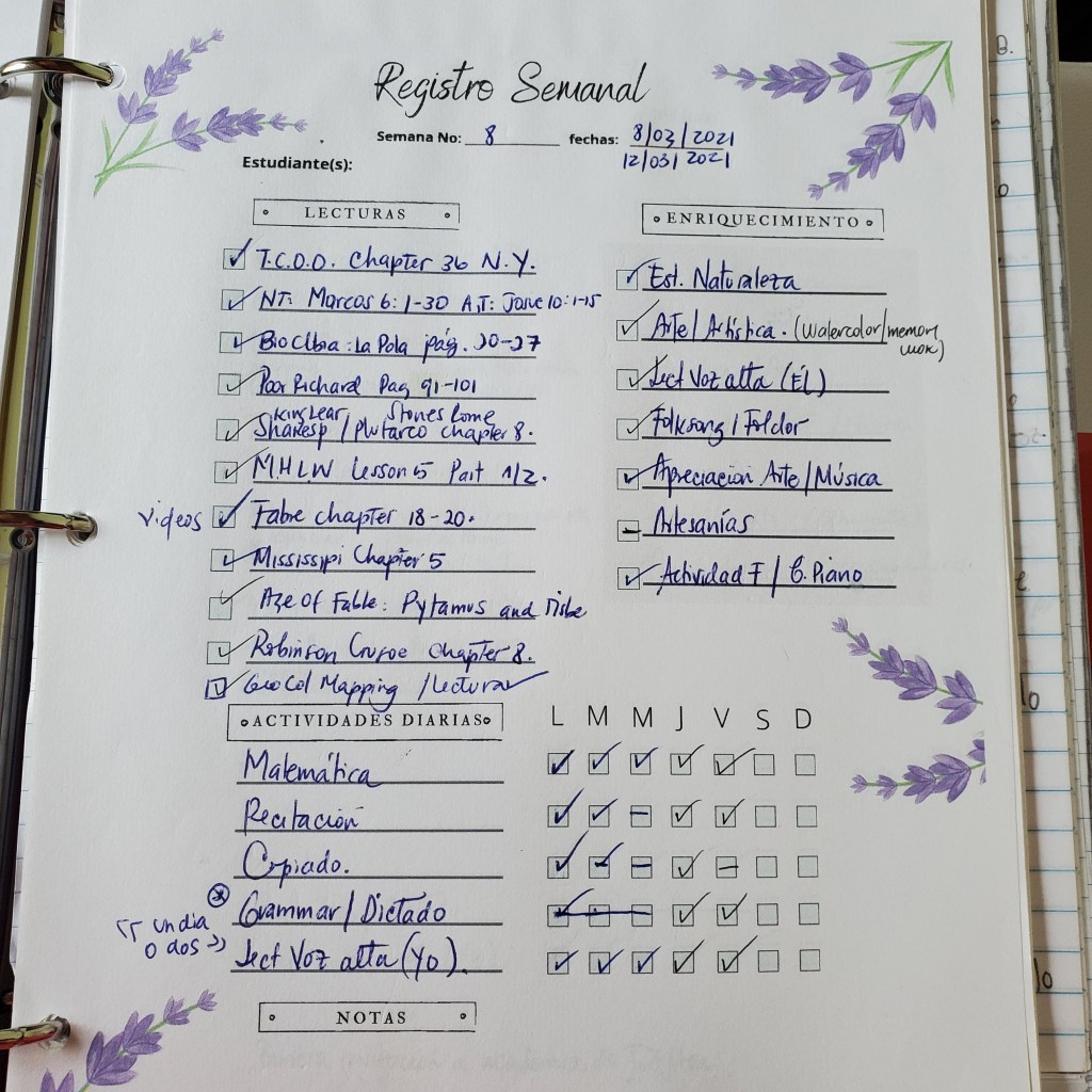 Otro año más aprendiendo de la mano de la pedagogía Charlotte Mason, y sin duda otro año atípico, no solo por lo que nos ha tocado vivir durante la crisis de salud por causa del Covid-19, sino también porque fue nuestro primer año educando en casa en nuestro país. Además de esto, Daniel entró en la Forma o Grupo II, anexando nuevas implementaciones a nuestra rutina como las de dictado, gramática, trabajo de mapas, y un poco más de volumen en cuanto a sus lecturas. Como familia bilingüe, este año nos vimos en la necesidad de ser mucho más intencionales en las lecturas de inglés, que se convierte ahora en el lenguaje minoritario, también tuvimos que ajustarnos a nuevas rutinas, e incluso decidimos empezar nuestro ciclo escolar como «calendario A», que quiere decir en nuestro país, que iniciamos formalmente a mitad de enero y finalizamos aproximadamente en el mes de noviembre.