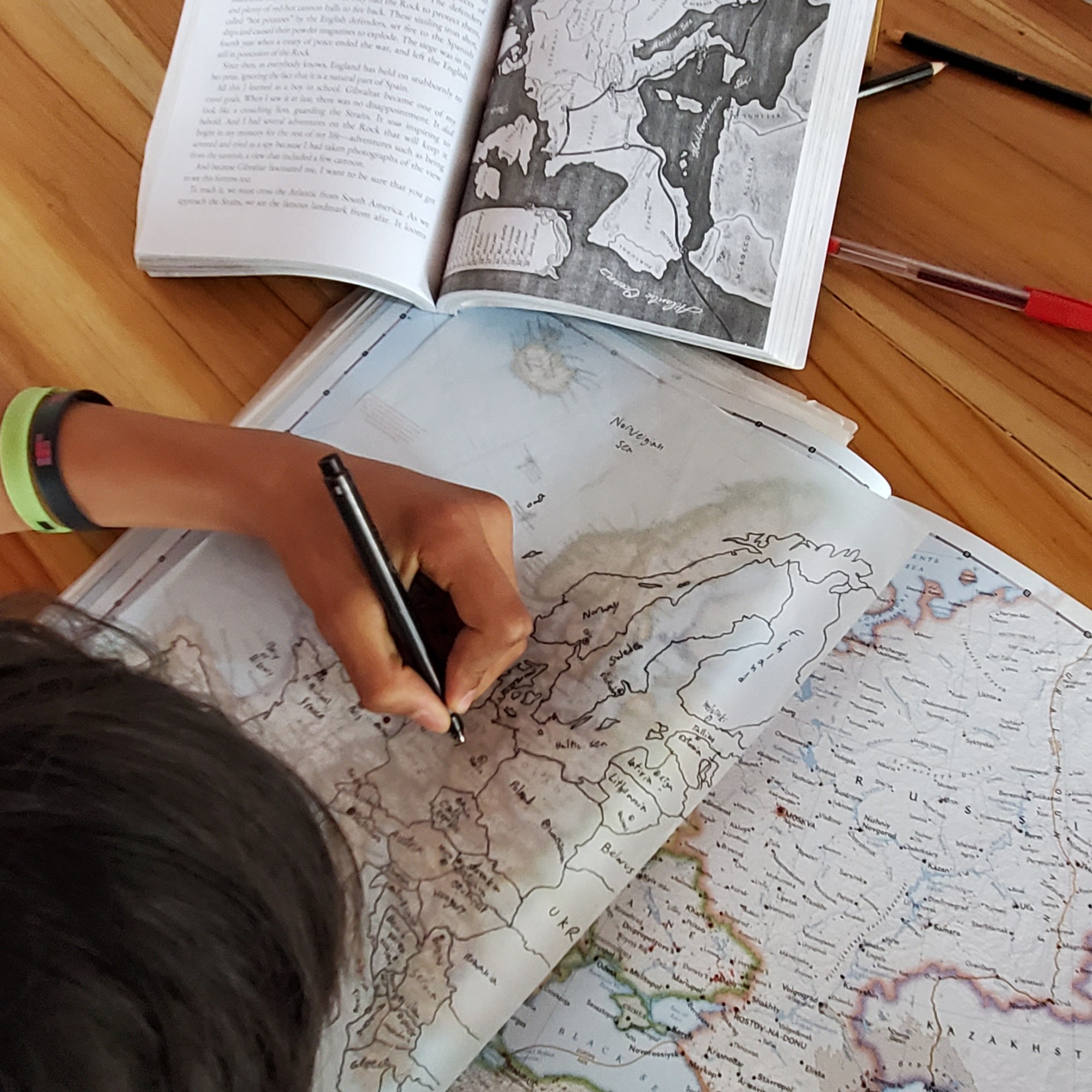 Dentro de las actividades de registro: Geografía y trabajo de mapas: la hicimos con los datos que nos proveían las lecturas de la semana. Esta vez el trabajo adicional de 10 minutos de mapa semanales que se implementa desde la forma II, lo combinamos con mapas históricos de sus lecturas de historia. Llevamos dos líneas una local y otra del mundo. Para geografía local (colombiana) uso muchísimo crónicas de viajes que por lo general se encuentran a disposición libre en la biblioteca el Banco de la República, y la del mundo la trabajamos con el libro asignado en Ambleside Online, este año abordamos las maravillas geográficas del continente americano. (The Complete Book of Marvels by Richard Halliburton )